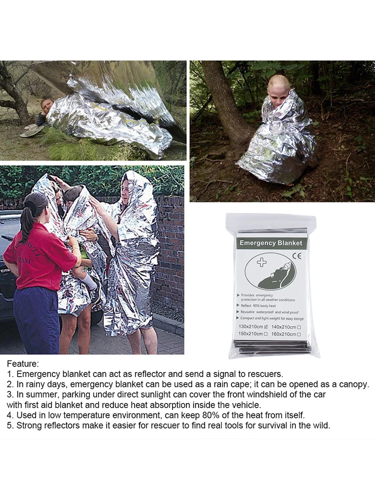 1. Reflective Signaling: The emergency thermal blanket can serve as a reflective film, signaling rescuers when you're in need. It increases your visibility in situations where you need assistance, making it an essential survival tool.