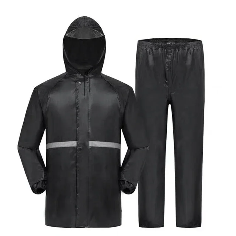 2pcs Hooded Coat & Pant Rain Suit For Women Men Outdoor Waterproof Rain Gear With Reflective Strip Motocycle Riding Raincoat