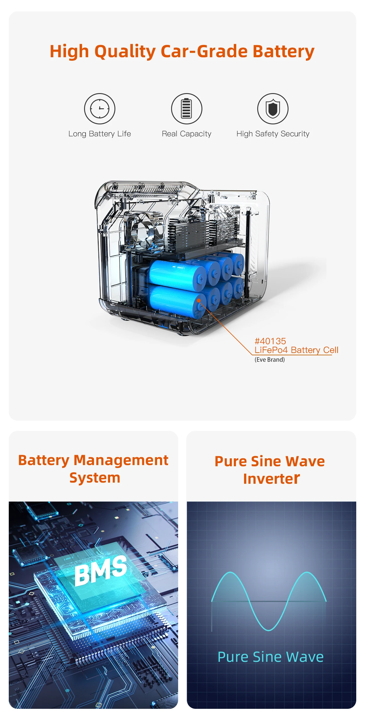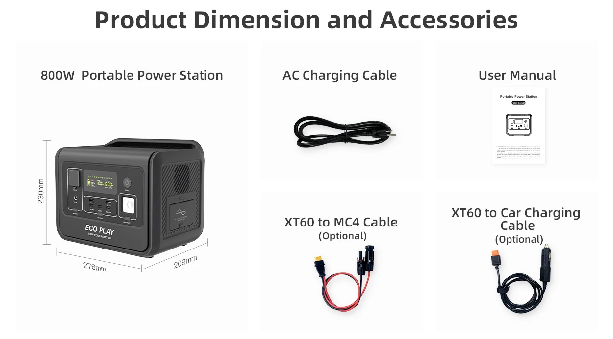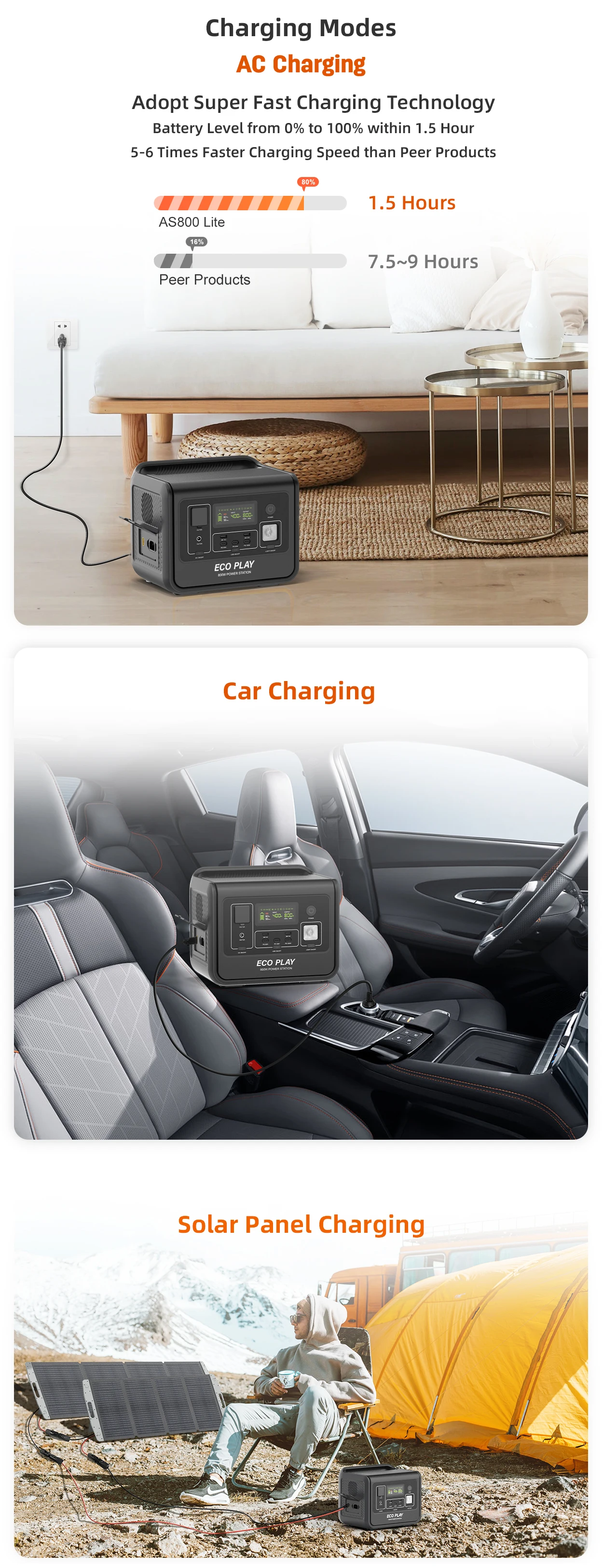Eco Play Portable Power Supply, EP800 512Wh, LiFeP04 Battery with 800W (1600W Surge) AC Outlets for Outdoor Camping RV Home