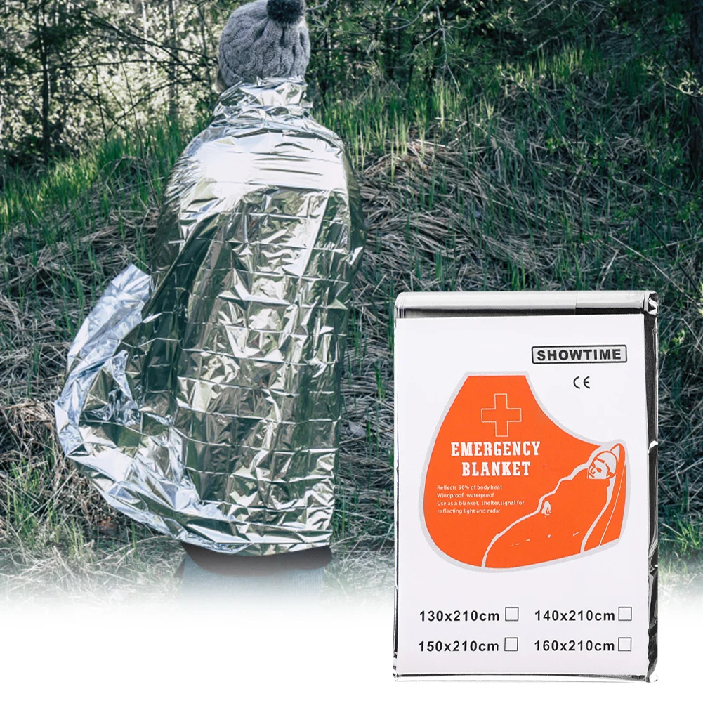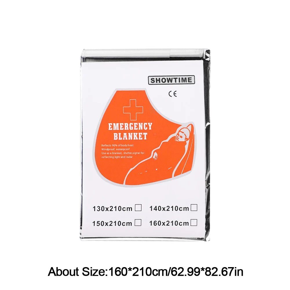 1. Excellent Thermal Insulation: These emergency blankets, made from aluminum foil material, reflect body heat and help you stay warm in cold weather conditions. They provide efficient insulation to retain body heat and prevent hypothermia. Specification: Origin: Mainland China Material: PET Film + Coating Color: Gold and Silver Size: 160x210cm/130x210cm/140x210cm (optional)